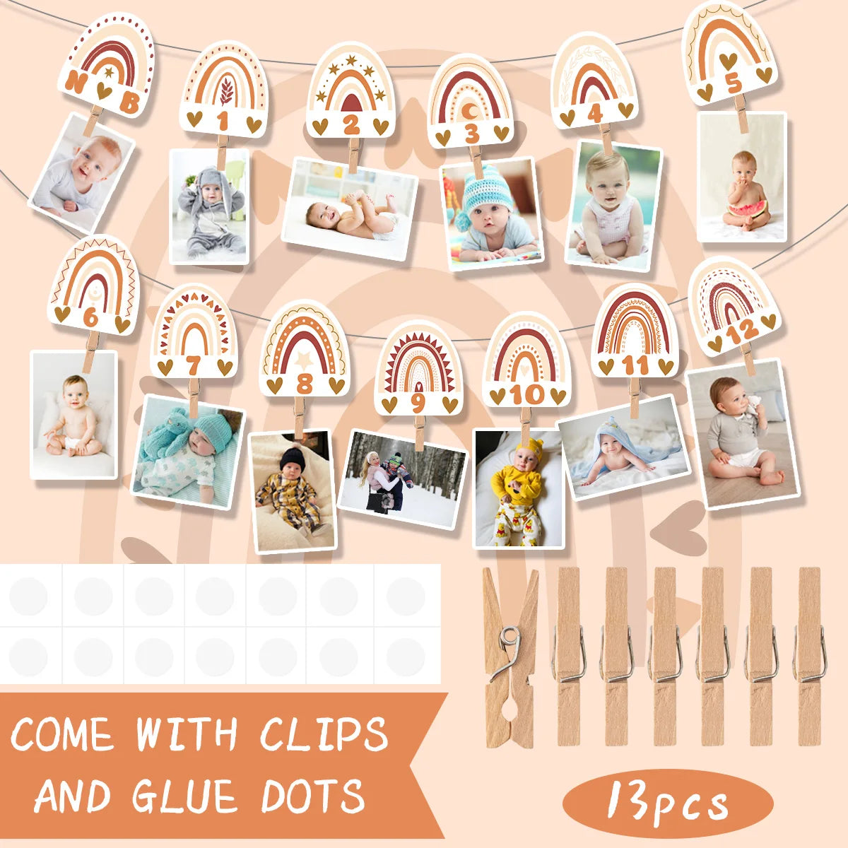 1st Birthday Rainbow Photo Baby Boho Newborn to 12 Months Photo Banner First Birthday Party Decoration Bohemian Monthly Garland