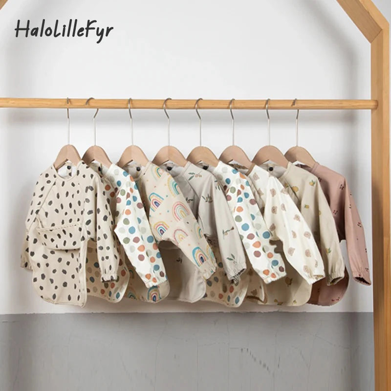 New Children Feeding Aprons Long Sleeve Baby Bib With Pocket Full Cover Kid Gown With Bag Waterproof Long-Sleeve Smock